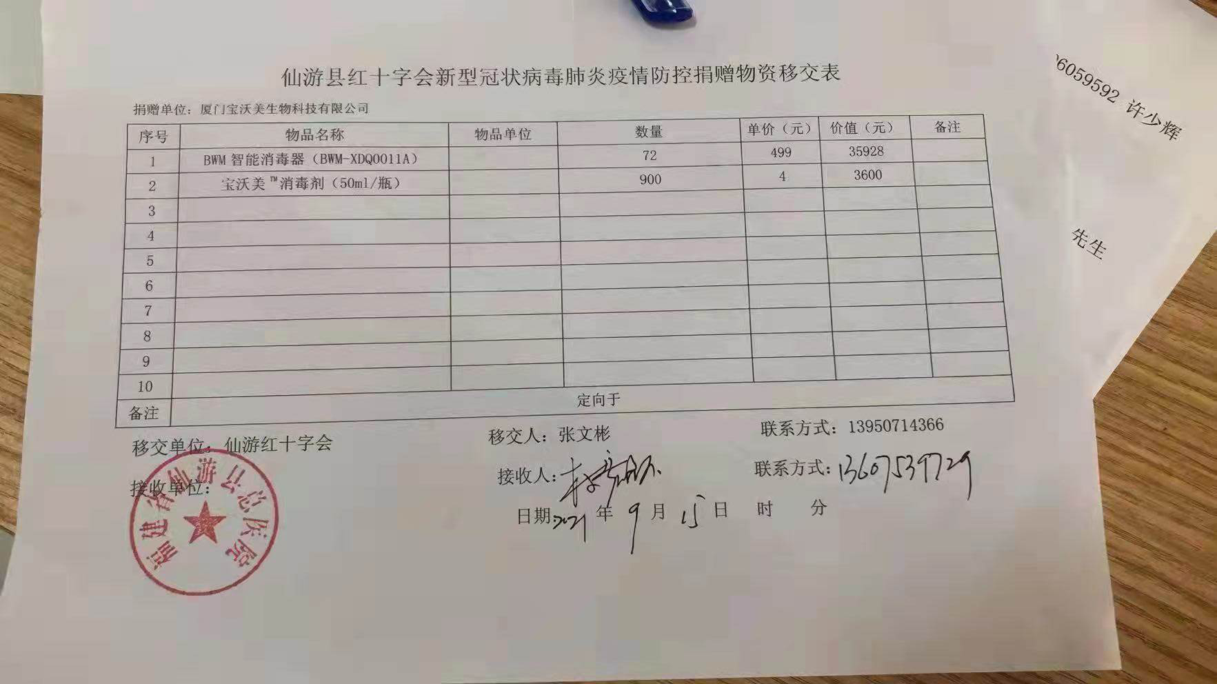 9月22 號公司又捐贈海滄紅十會 同安新民鎮(zhèn)幾十臺消毒劑及配套的消毒劑。